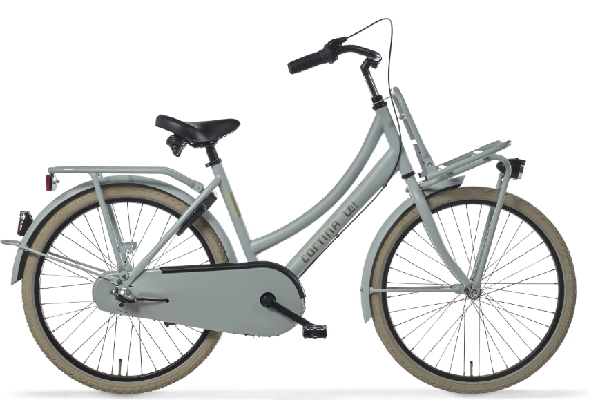 | Column 32 | Cortina Transport U4 Mini meisjesfiets in framemaat 24inch. Kleur: Grey Smoot Matte. Uitgerust met achter een Shimano Nexus 3-traps versnellingsnaaf met terugtraprem en voor een standaardnaaf. Opvallende details: voordrager. |